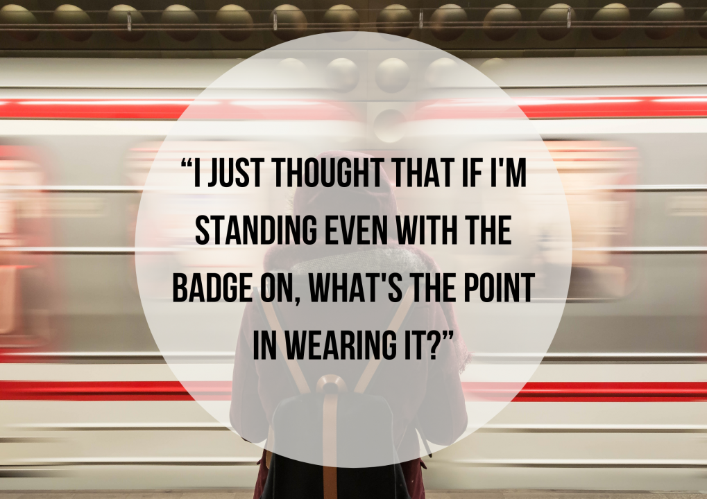 Charlotte stated for the meantime she would not wear a token either, due to society’s pre-conceptions, but put forward: “I would really like to see the Blue Badge showing examples of why a person with an invisible illness needs to sit down on public transport using the billboards on station platforms and on the trains.”