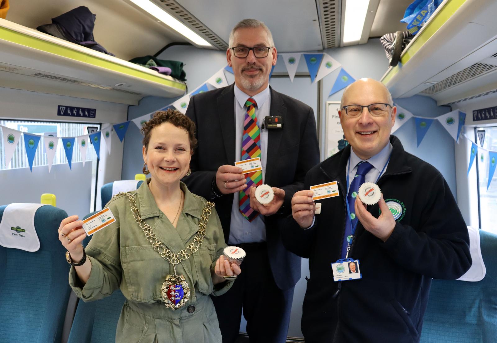 Hastings mayor Cllr Becca Horn welcomed passengers with an on‑board announcement, reinforcing the line’s modern-day value: