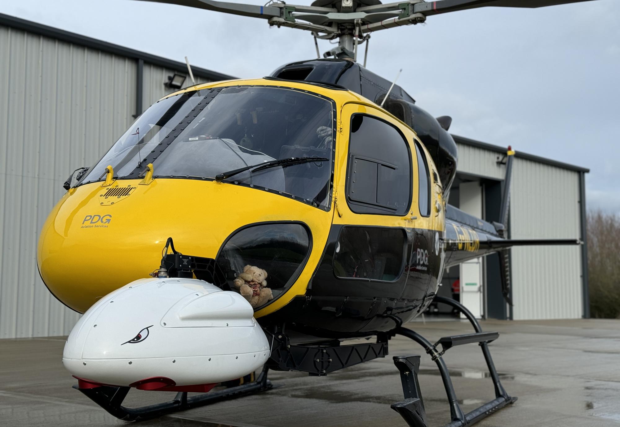 The Multi-Angle Camera System (MACS) is housed in a pod beneath the company's Twin Squirrel helicopter, which can cover extensive stretches of railway in a single shift, carrying both a pilot and an aerial surveyor.