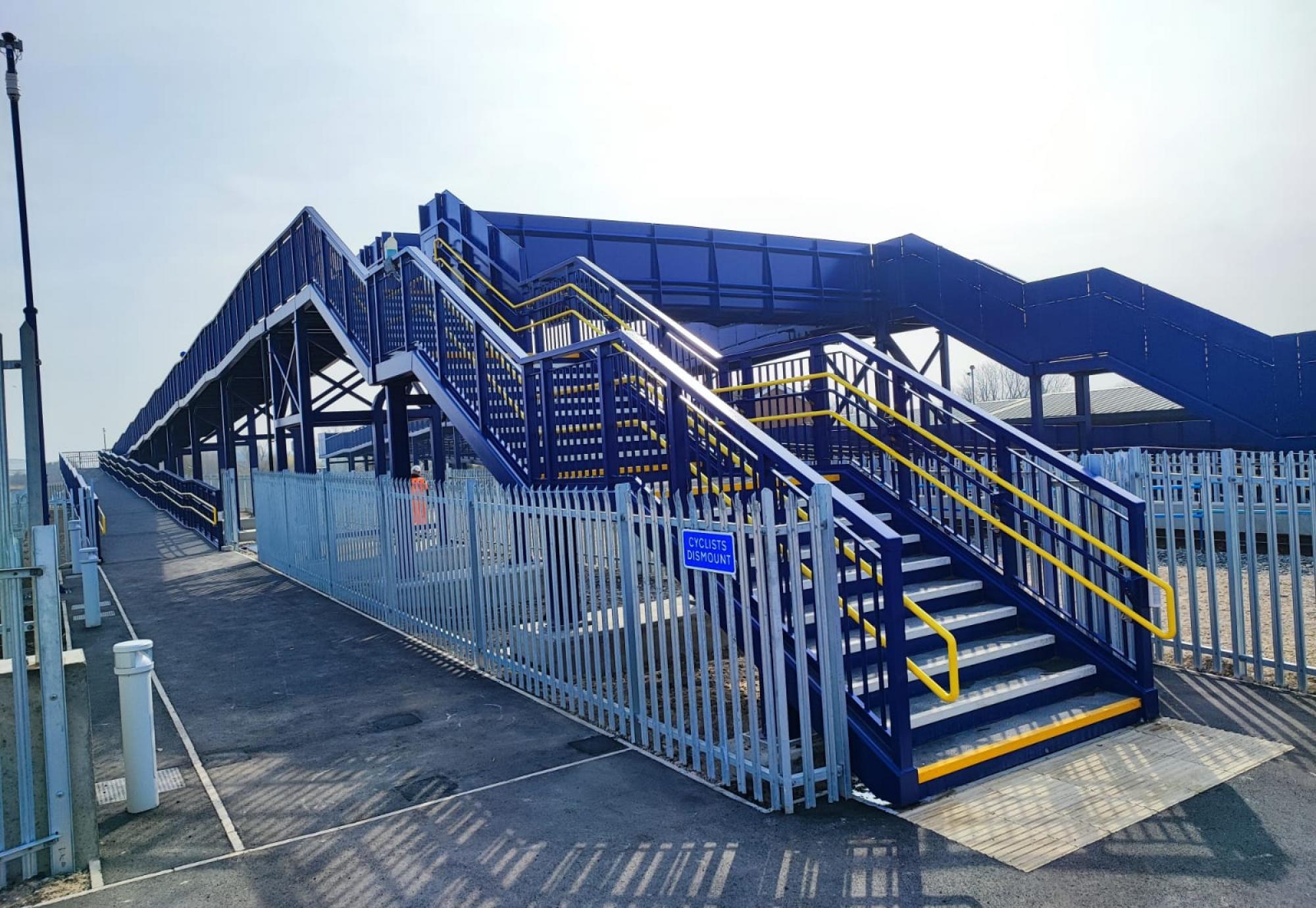 The new bridge includes ramps and stairs providing an accessible and safe route over the railway.